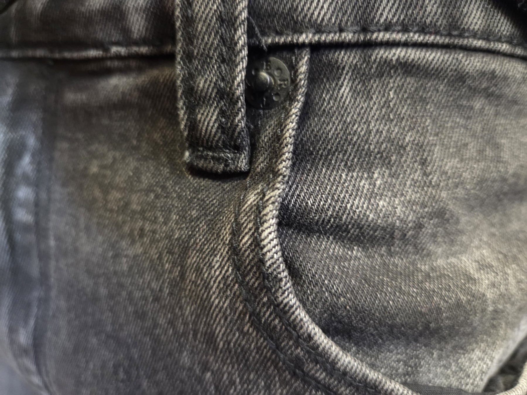 Color & Material: The jeans are made of a washed or faded black denim, giving them a slightly distressed, charcoal-like appearance.