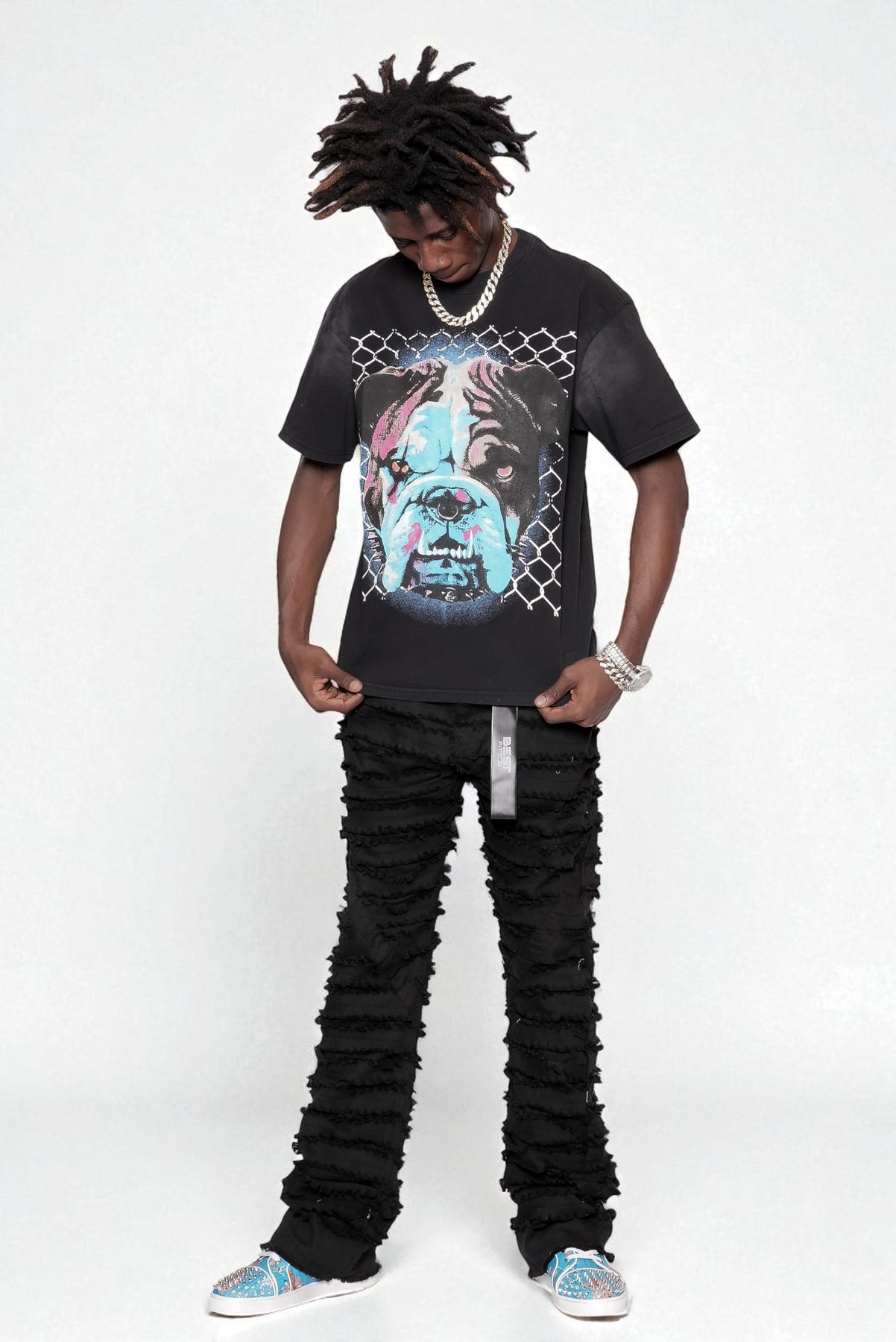 Elevate your streetwear rotation with these one-of-a-kind Urban Edge Distressed Baggy Jeans, crafted for the bold trendsetter who lives for effortless edge and maximum comfort. Cut from premium, non-stretch 100% cotton denim in a deep black wash, these mid-rise bad boys deliver a slouchy, oversized fit that's relaxed through the hips and thighs, flaring out into a dramatic wide-leg silhouette that stacks perfectly over your favorite kicks.